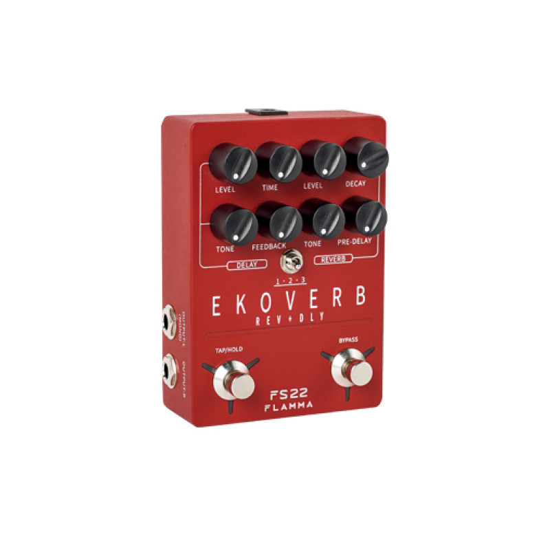 Flamma Ekoverb имеет три комбинации эффектов задержки и реверберации, которые состоят из настройки Reverse Delay/Swell Reverb, Analog Echo Delay/Mod Reverb и классической комбинации Analog Delay/Shimmer Reverb. Можно изменить уровень и тон задержки и реверберации, а также время и обратную связь задержки или затухания и предварительной задержки реверберации. Это позволяет вам установить для каждого параметра эффект задержки или реверберации на максимальную громкость или полностью отключить его, позволяя использовать только эффект задержки или реверберации.