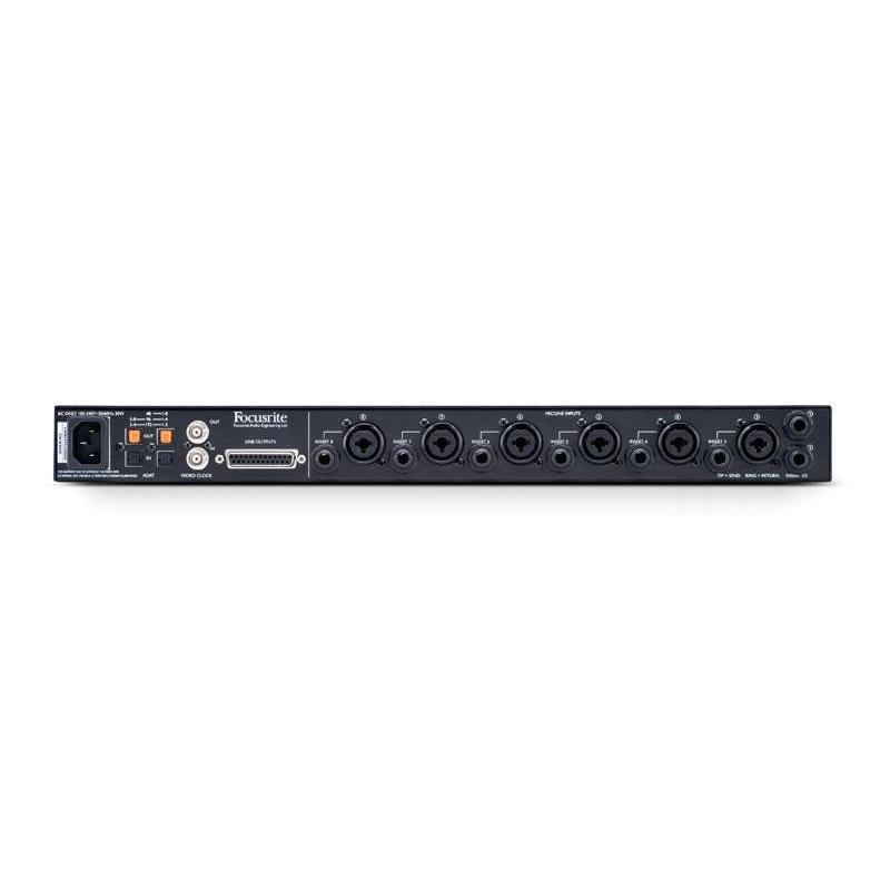 - Входы/выходы: 8 х комбинированных входов (1/4" TRS/XLR), 8х балансных выходов D-Sub 25, 2x ADAT, BNC i/o