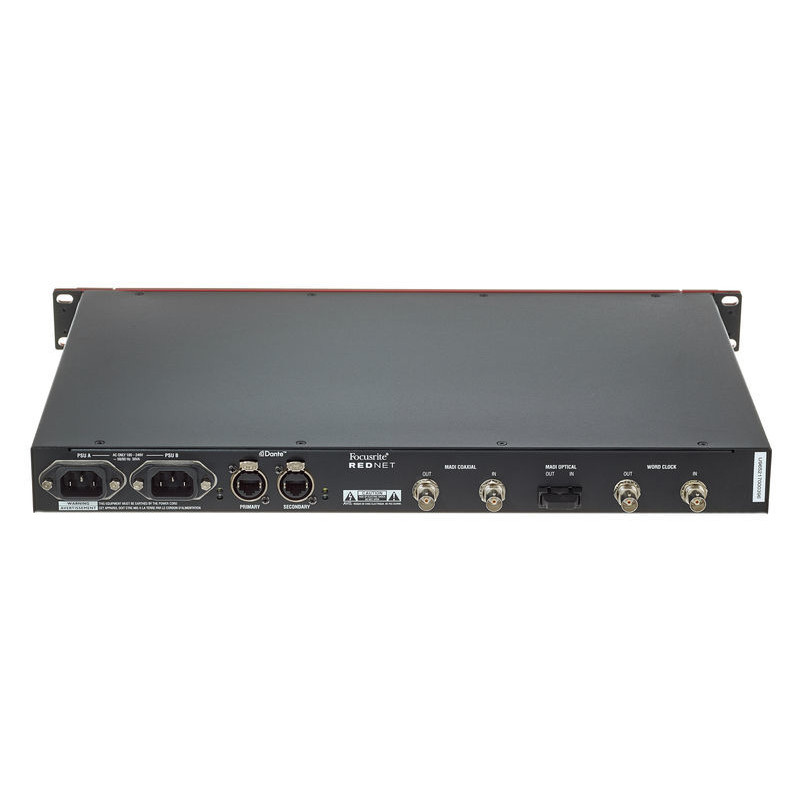 Устройство оборудовано конвертацией по частоте сэмплирования на каждом выходном и входном каналах и позволяет с легкостью соединять оборудование с разъемами MADI с сетью Dante. Оптические и коаксиальные разъемы для MADI оборудованы подключением ко внешним часам, что позволяет синхронизировать сеть Dante с другим цифровым аудиооборудованием. Focusrite RedNet D64R поможет вам объединить аудиосистему на базе RedNet с любой системой MADI/AES10. Он выполняет ту же функцию, что и Focusrite Rednet 6, с добавлением резервных источников питания и резервирования сети для обеспечения максимальной надежности в живом звуке или широковещательной среде. С поддержкой до 64 каналов коаксиальных и оптических MADI I / O, RedNet 6 также имеет асинхронный преобразователь частоты дискретизации. Таким образом, вы можете взаимодействовать между MADI и RedNet, не беспокоясь о правильной частоте дискретизации для каждого канала. Прибор занимает один юнит в рэке.
