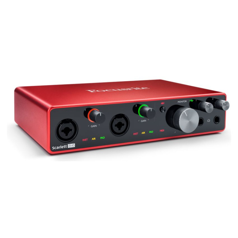 Scarlett 8i6 — компактный аудиоинтерфейс, который вы, возможно, так долго искали. Он позволяет поддерживать постоянную готовность вашей аппаратуры к работе — микрофоны, гитары и синтезаторы всегда будут "в полной боевой готовности", когда бы вдохновение не посетило вас. Усовершенствованные конвертеры АЦП и ЦАП благодаря своим техническим характеристикам (26 бит / 192 кГц) гарантируют чистоту и прозрачность записываемого и воспроизводящегося материала, а два высококачественных выхода на наушники с регулятором громкости обеспечивают гибкость мониторинга при записи и микшировании.