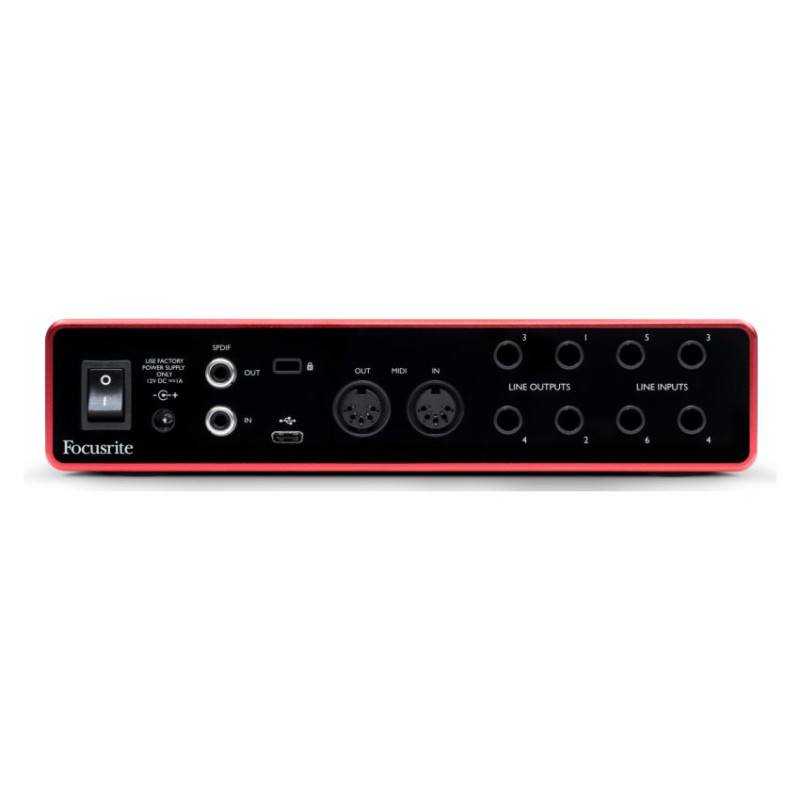 Scarlett 8i6 приспособлен к интенсивной работе в сложных условиях и подключается к компьютеру Mac® или PC обычным USB-кабелем. В комплект поставки входит все необходимое для работы программное обеспечение: две полнофункциональные цифровые рабочие аудиостанции (Ableton® Live Lite™ и Pro Tools® First Focusrite Creative Pack); Time и Tone Bundle компании Softube; Red Plug-in Suite компании Focusrite и один из четырех виртуальных клавишных инструментов Addictive Keys компании XLN Audio на выбор.