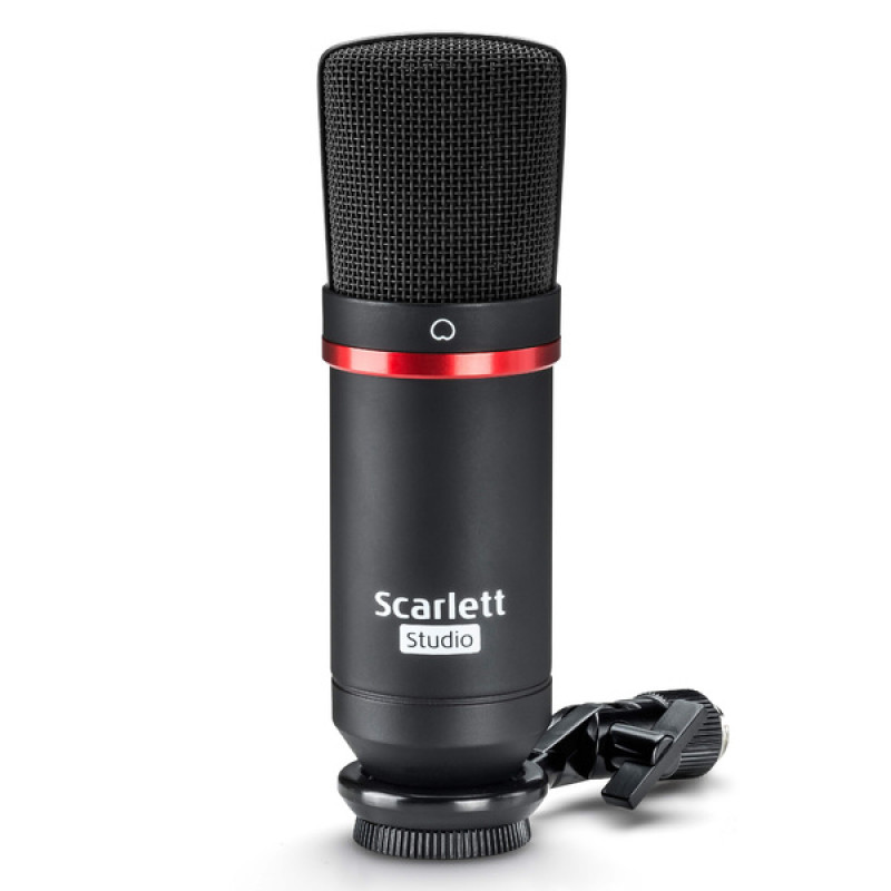 - В состав входит аудиоинтерфейс Scarlett Solo, кардиоидный конденсаторный микрофон CM25 MkII и закрытые охватывающие наушники HP60 MkII