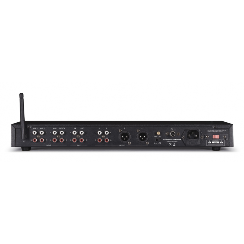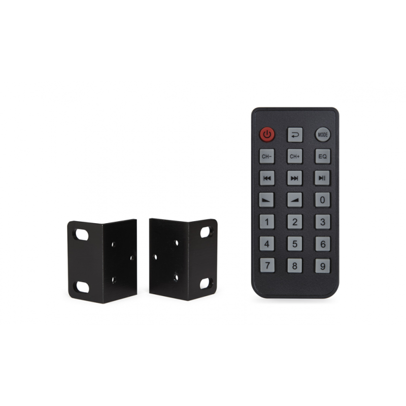 Воспроизводит FM-радио и музыкальное содержимое с локальных носителей (USB, microSD), а также аналоговых входов, включая микрофонный. Имеет выход на наушники и контрольный монитор. Управление по ИК.