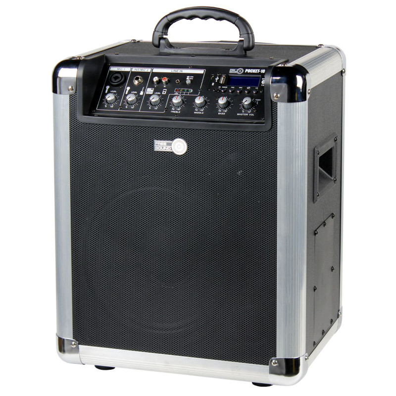 POCKET-10 - портативная акустическая система с питанием от встроенного аккумулятора с множеством возможностей, среди которых MP3-проигрыватель с USB и SD слотом, BLUETOOTH-проигрыватель, а также встроенный микшерный пульт. Микшерный пульт имеет 1 комбинированный XLR/TRS микрофонный вход, 1 низкоимпедансный инструментальный вход, 1 стереовход с разъемами RCA x 2 и миниджеком для подключения линейных стереоисточников, таких как портативные плееры, смартфоны и т.д. Система имеет прочный корпус из MDF с отделкой из ПВХ, имеющий выдвижную телескопическую ручку и колеса для удобной транспортировки. Для защиты корпус снабжен усиливающими уголками.