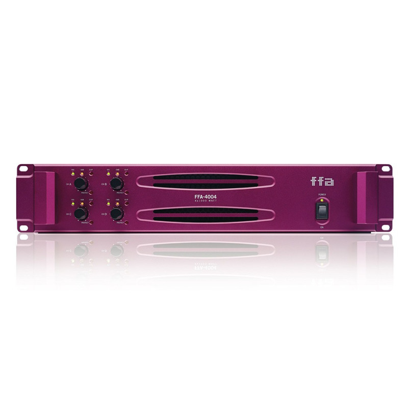 Новый четырехканальный усилитель мощности. Полная нагрузка всех 4-х каналов с сопротивлением 4 Ом. Универсальный многорежимный усилитель мощности, идеальный для многополосных туровых систем и линейных массивов. FFA-4004 поддерживает возможность работы как оконечный низкочастотный усилитель для суббасовых систем. Bi amp-выходы максимально упрощают построение многоточечных театральных систем звукоусиления и идеальны для сценических мониторов и прострелов. Эффективная технология FFA класса D, новый инновационный блок питания позволяют получить максимальный выходной сигнал даже в самых сложных условиях.