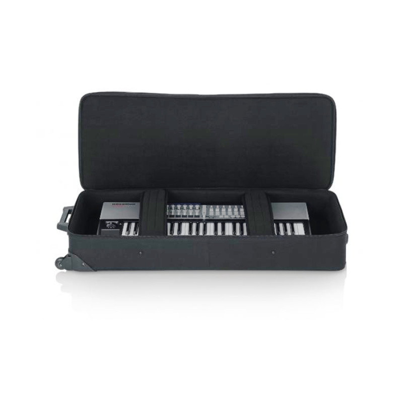 GATOR GK-49 сумка для переноски синтезатора. Прочная конструкция. Толстые стенки надежно защищают инструмент от повреждений. Регулируемые мягкие ремни для крепления клавиатуры. Ручка и колеса для комфортной транспортировки Боковой карман для аксессуаров.