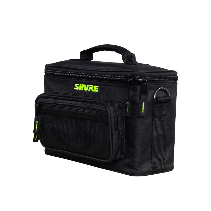Сумка изготовлена из прочного нейлона 600D. Защищает микрофоны от неблагоприятных погодных условий. Имеется дополнительное отделение для мелочей. Внешнее отделение приспособлено для кабелей или любых других аксессуаров. Сумка имеет усиленную мягкую ручку и съемным регулируемый ремень через плечо.