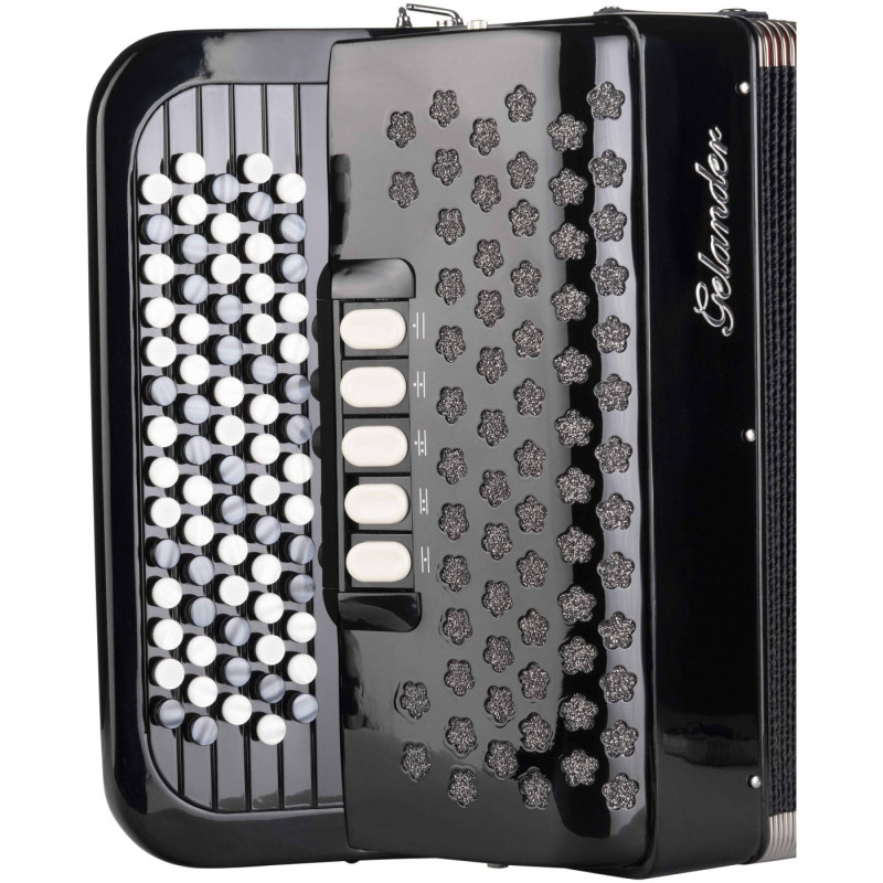 Кнопочный ученический аккордеон GELANDER GH5096-3B BK черного цвета с готовым аккомпанементом.