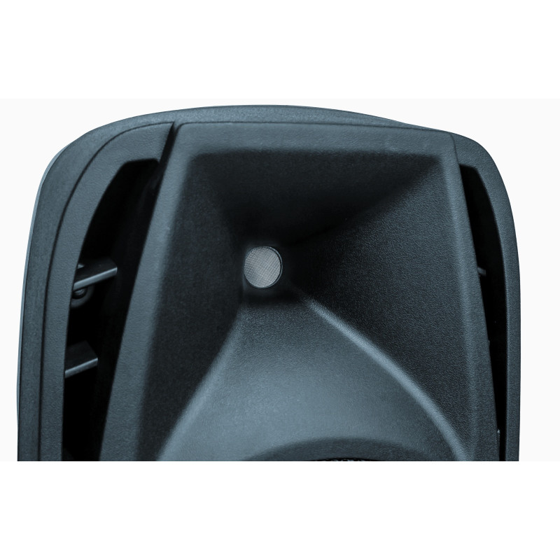 В качестве пищалки используется титановый твитер с дюймовым излучателем. Твитер традиционно для PA систем имеет рупорное оформление и защищен металлической сеточкой. Низкочастотный динамик оборудован 10 дюймовым диффузором и от механических повреждений также закрыт металлической решеткой.