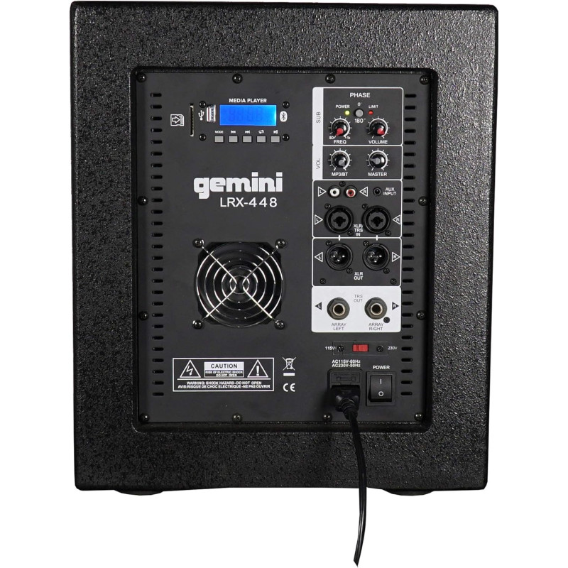 Gemini LRX-448 – мощная портативная 12" акустическая система с сабвуфером, сочетающая в себе профессиональное качество звука и удобство использования.