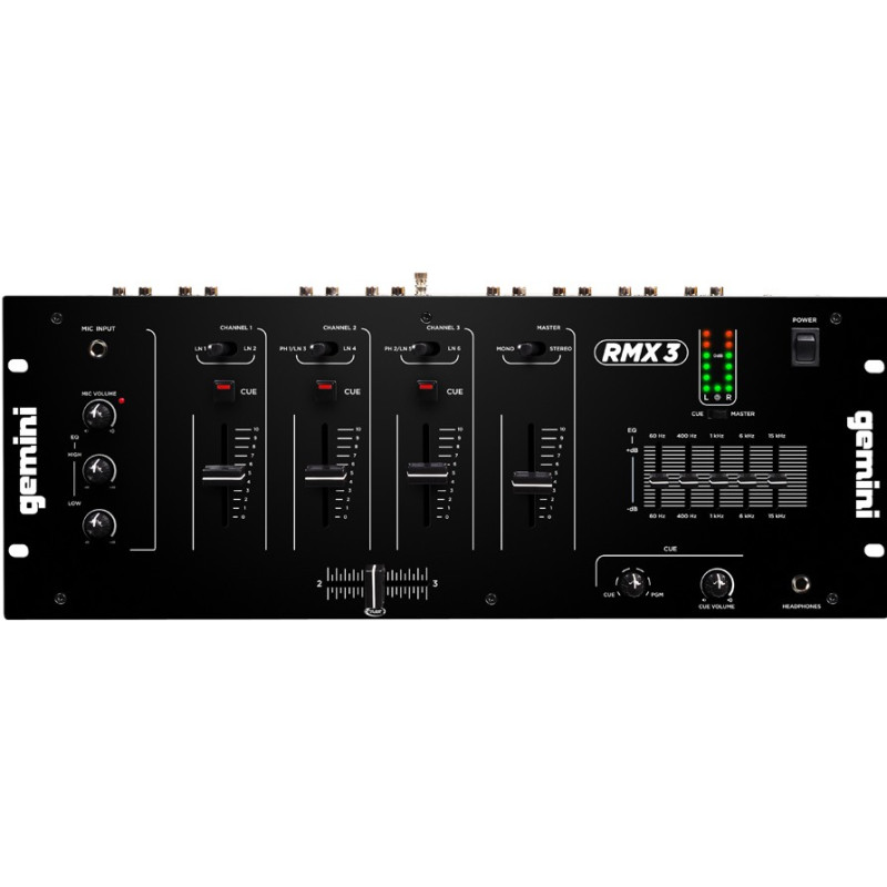 Gemini RMX3 DJ микшер рэковый 3 канала LINE/PHONO + MIC вход 2 -band EQ, 5 band master EQ