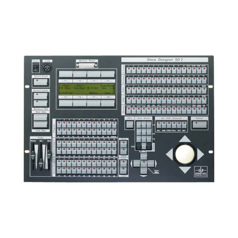 Унивесальный пульт управления светом, 512 каналов, для 16 приборов типа сканер, использующих для работы до 32 каналов DMX и прожекторов PAR, Blackout, функция Midi, назначение функции на фейдер, 16 пресетов, 200 программ, 100 чейзов по 450 шагов, 1250 сцен в памяти, линейный Audio вход, 15 специальных функций для ириса и диммера, LSD дисплей, спец. каналы для PAR, смешение сцен для PAR и сканеров, специальные функции для управл. Pan/Tilt и трекбола, вес 7 кг.