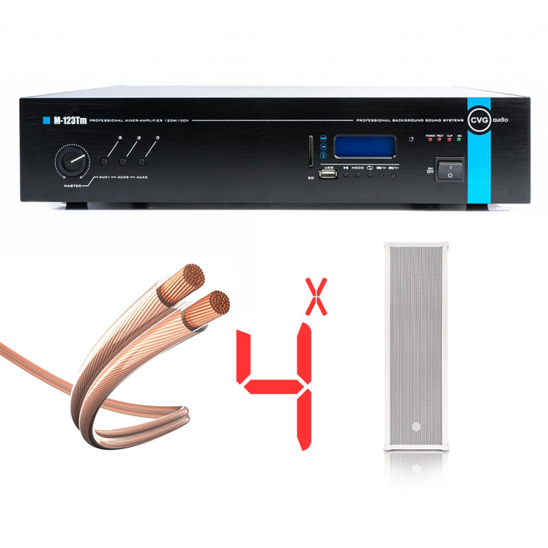 CVGAUDIO CSP43T (4 шт.) - Звуковая колонна для 100V систем трансляции фоновой музыки и речевых сообщений. Звуковые колонны устанавливаются на фасадах торговых комплексов, вокзалах, автостоянках и других общественных помещениях и территориях. CVGaudio CSP43T имеет влаго и пылезащитный корпус (IP55) и благодаря этому, данная модель звуковой колонны может быть установлена на открытом воздухе.