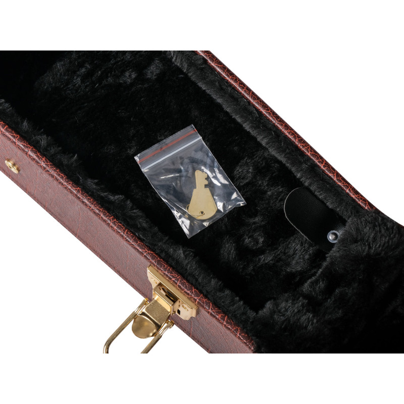 Прочная фанерная конструкция с виниловым покрытием Tolex и плюшевой, экологически чистой внутренней обивкой. В мягком пространстве кейса ваша гитара полностью защищена.