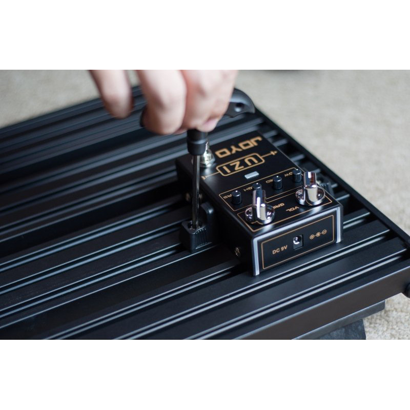 Удобный в использовании инновационный педалборд для педалей разных размеров.