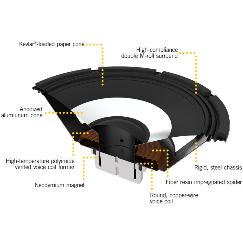 - НЧ-драйвер: 15-дюймовый гибридный бумажно-алюминиевый диффузор HyDrive с неодимовым магнитом