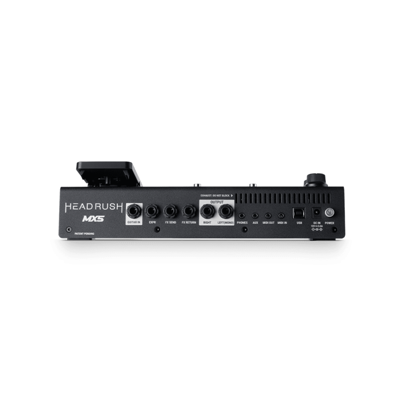 Прочная и компактная конструкция MX5 может похвастаться 3 футсвитчами, оснащенными отдельными светодиодами RGB, педалью экспрессии (с регулируемым натяжением и встроенным переключателем на носке) и большим количеством входов и выходов на задней панели. В этот список входят: 1/4-дюймовый гитарный вход, стереопара 1/4-дюймовых симметричных выходов, 1/8-дюймовый вход AUX, 1/8-дюймовый выход для наушников, MIDI In/Out и 1/4-дюймовая стереофоническая петля эффектов. Стерео петлю можно использовать для интеграции внешних педалей и размещения их в любом месте сигнальной цепи MX5, а также для подключения MX5 к традиционным гитарным и басовым усилителям с помощью четырехкабельного метода. Также имеется порт USB, который можно использовать для записи или реампинга в студийном качестве (до 24 бит 96 кГц), передачи пресетов и лупов на комьютер, а также для простого обновления функций MX5, когда HeadRush выпускает обновления функций и библиотеки приборов.