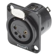 Hicon HI-XMEF4 - Разъем MINI XLR4 с пружинным механизмом фиксации гнездо на панель позолоченные контакты под пайку количество контактов: 4 металлический никелированный корпус размер отверстий: 17 1 х 11 4 мм (Ø 2 8 мм) фланец: 24 4 х 18 8 мм (В х Ш)