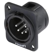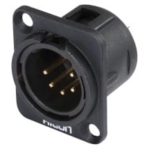 Hicon HI-XMEF5 - Разъем MINI XLR5 с пружинным механизмом фиксации гнездо на панель позолоченные контакты под пайку количество контактов: 5 металлический никелированный корпус размер отверстий: 17 1 х 11 4 мм (Ø 2 8 мм) фланец: 24 4 х 18 8 мм (В х Ш)