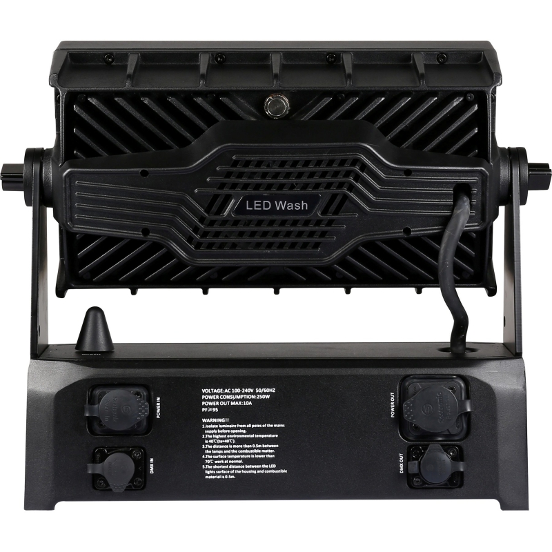Световой поток обеспечивают 18 светодиодов каждый по 15 Вт. и с системой цветосмешения RGBW красный, зеленый, синий, белый. Благодаря мощному световому потоку LED-модулей прибор идеален для подсветки больших зданий, уличных сцен и сцен в помещениях.