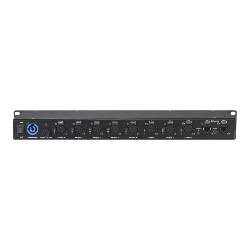 I LIGHTING AN-GB-3P универсальный конвертор.Это ультрасовременные устройства сетевой маршрутизации, которые преобразуют сигнал ArtNET в DMX512 и обратно. По одному кабелю может передаваться до 4096 каналов. Это делает AN-GB-3P пригодным как для небольших, так и для крупных мероприятий. AN-GB-3P включает встроенный сетевой коммутатор, что позволяет использовать его в качестве ретранслятора Ethernet, а также 8 изолированных областей DMX-512, которые могут использоваться в качестве входа или выхода. Все настройки могут выполняться с помощью простого в использовании меню на графическом дисплее и кнопок на передней панели.