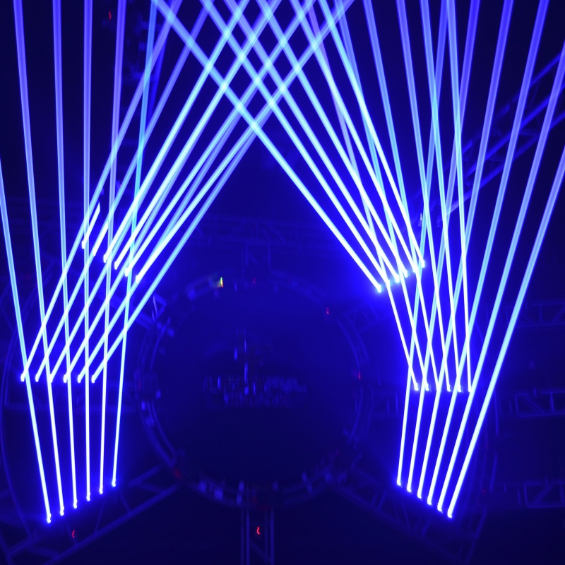 I LIGHTING LASER BAR-B лазерный прожектор,новый продукт на рынке лазерных шоу- технологий. Шесть независимых лазерных источников по 500 мВт с возможностью вращения по двум осям Y 240° и Z 140° индивидуальное управление каждым источником.
