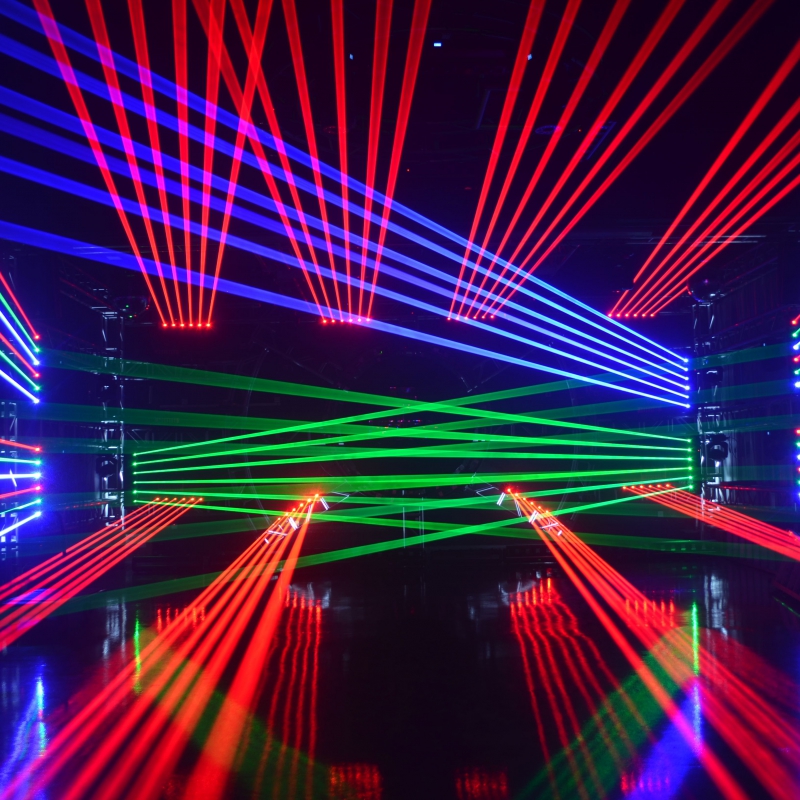 I LIGHTING LASER BAR-R лазерный прожектор,новый продукт на рынке лазерных шоу- технологий. Шесть независимых лазерных источников по 500 мВт с возможностью вращения по двум осям Y 240° и Z 140° индивидуальное управление каждым источником.