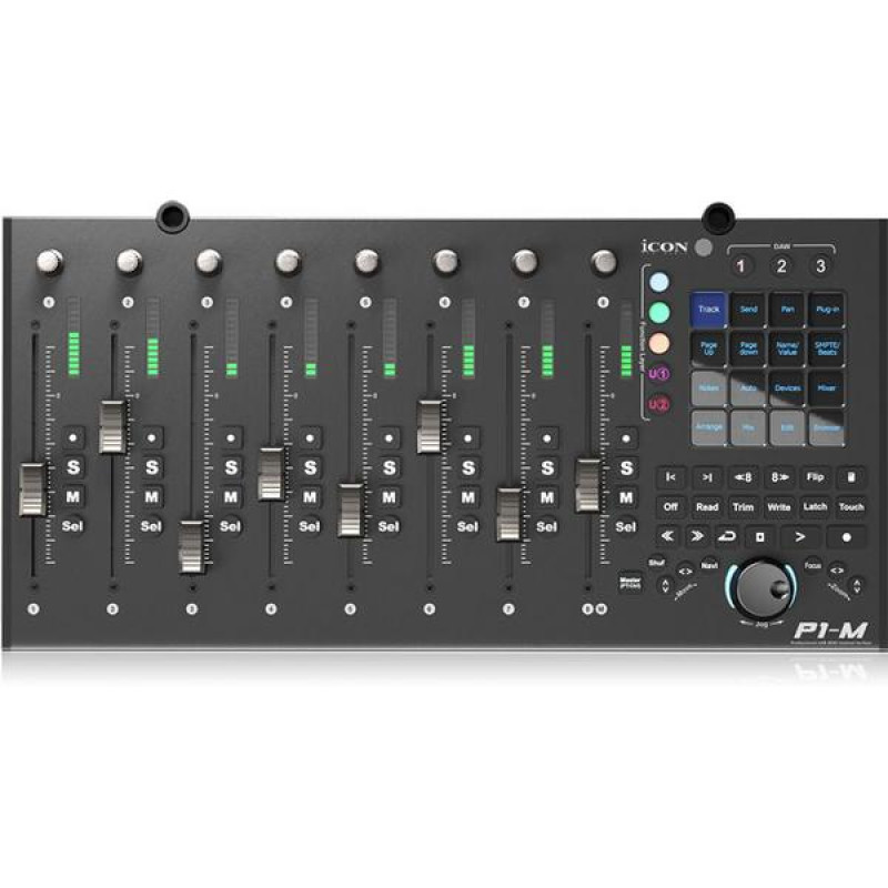 Модель имеет 8 моторизованных фейдеров и возможность одновременного объединения 8 каналов. Модель P1-M создает широкие возможности управления с возможностью расширения до 64 каналов (в зависимости от вашей DAW) с помощью дополнительных модулей расширения P1-X. P1-M совместим с ведущими DAW, такими как: Bitwig, Cubase/Nuendo, Logic Pro X, Ableton Live и Pro Tools. Кроме того, вы можете работать одновременно с тремя DAW, что обеспечит плавный и непрерывный творческий процесс. Программируемый 4-дюймовый цифровой сенсорный дисплей с 16 панелями, отображающий функции DAW в 5 цветовых режимах, потенциальное общее количество отображаемых и реализуемых функций: 80. Легкое управление функциями DAW на сенсорном экране с 16 панелями с помощью "перетаскивания" в iMAP, изменения вносятся в режиме реального времени. Модель имеет высококачественное поворотное колесо Jog оптического энкодера с точным и плавным управлением для быстрого поиска, очистки и др. Также, модель имеет подсвечиваемую кнопку Zoom с 2-мя клавишами направления (Влево/Вправо, Вверх/Вниз) используется в сочетании с колесом Jog.