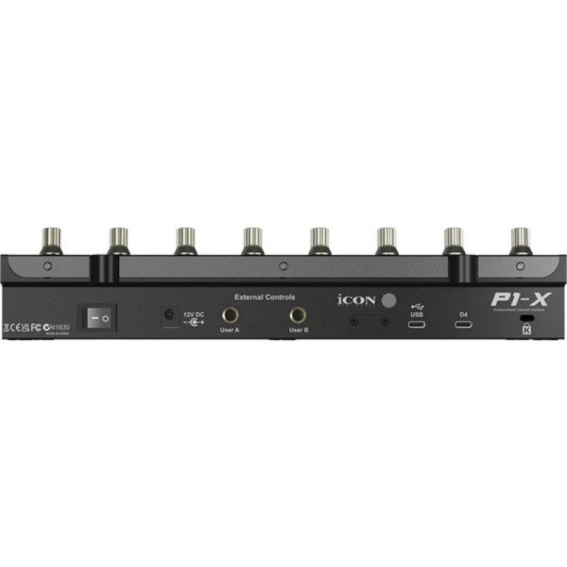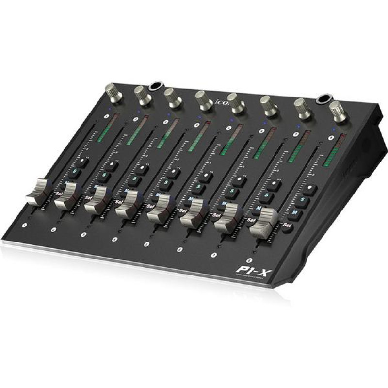 Модуль P1-X оснащен восемью сенсорными моторизованными канальными фейдерами с 12-битным разрешением, дополненными восемью двухфункциональными ручками-энкодерами, а также основными кнопками отключения звука, солирования, выбора и записи.