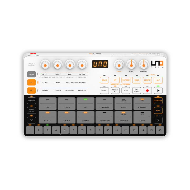 - Внутритактовое деление: 16, 32, 3/4, 6/8; функция Swing.