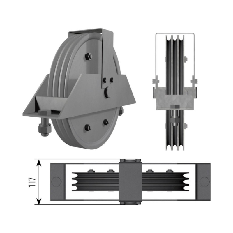- Модель:Блок трехручьевой штампованный, диаметр каната – до 11 мм