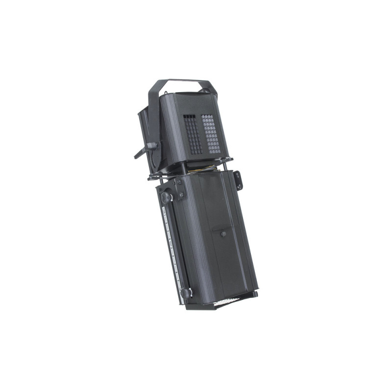 Великолепное качество источника света: прожектор хорошо подходит для классической театральной сцены или сцены дома культуры и даёт такой же натуральный свет, как и театральные приборы с лампами накаливания 1000 Вт. Регулируемый фокус и zoom, профилирующие заслонки, слот для ирисовой диафрагмы и гобо.