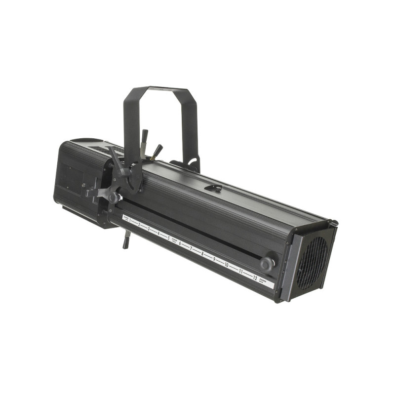 Прожектор обладает всеми возможностями ламповых приборов с профилированием луча и оснащён оптикой с углом раскрытия 8˚…22˚. Светодиодный источник света с цветовой температурой 3000K (теплый свет) и индексом цветопередачи 90RA хорошо подходит для замены ламповых приборов, которые потребляют много электричества. Прожектор оснащен удобным ЖК-дисплеем с меню на русском языке, имеет очень плавную регулировку яркости и низкий уровень шума во время работы. Подходит для замены аналогичных прожекторов с лампами накаливания до 1000 Вт.