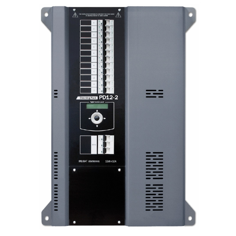 Диммерный блок. 12 каналов по 2 кВт, сигнал управления – DMX-512, поддержка протокола RDM, высота 2U, монтаж в рэк.