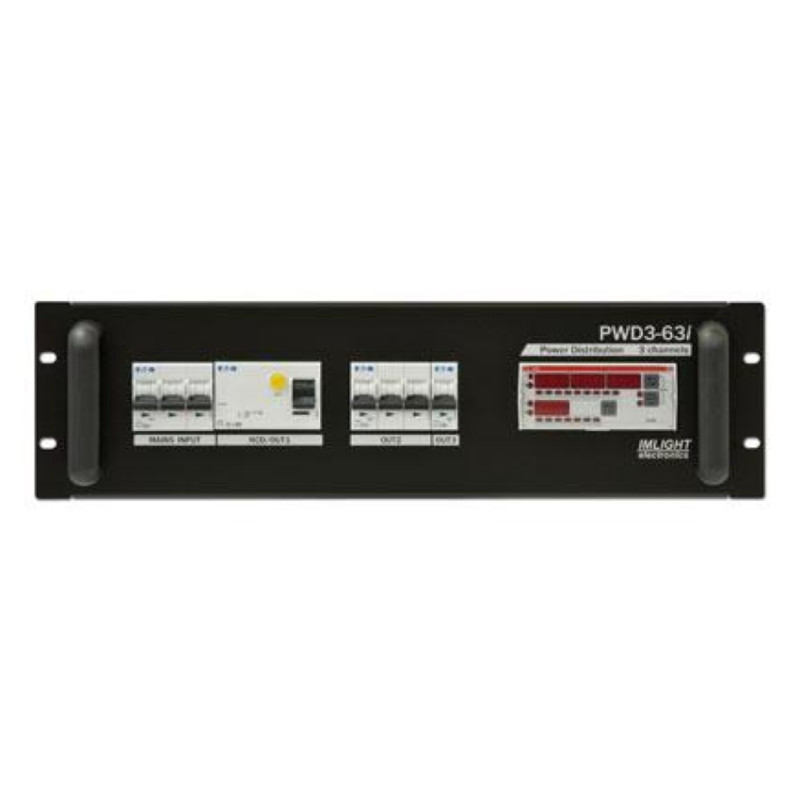 Блок распределения питания PWD 3-63i предназначен для измерения электрических паратметров питающей сети и распределения питающего напряжения между потребителями в осветительных системах, системах озвучивания помещений при использовании последних на театральных и концертных площадках, в домах культуры, дискотеках, ресторанах и т.п. Блок имеет встроенный цифровой прибор для измерения электрических параметров сети. Высота 3U, монтаж в рэк.