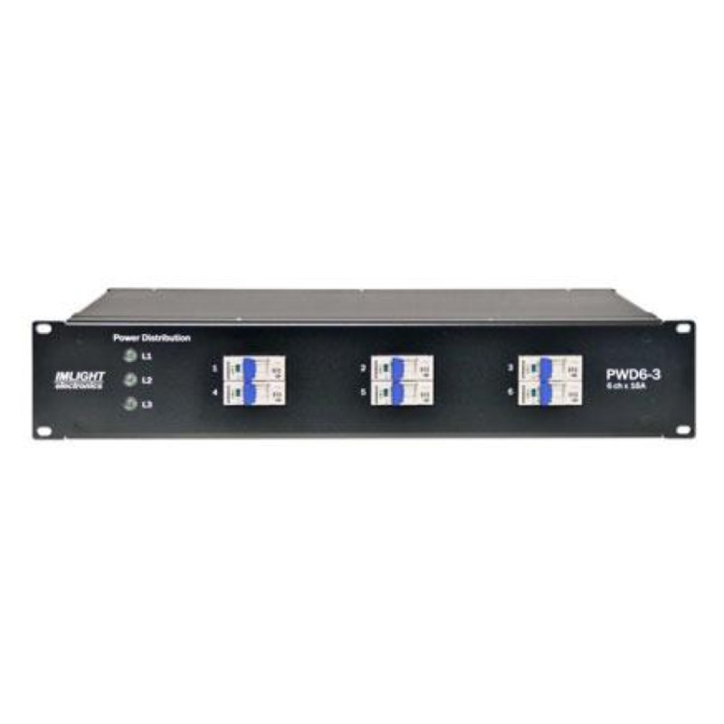 IMLIGHT PWD 6-3 (SC) - Серия блоков распределения питания для коммутации входного 3-фазного напряжения на 6 независимых выходов. Высота 2U, монтаж в рэк.