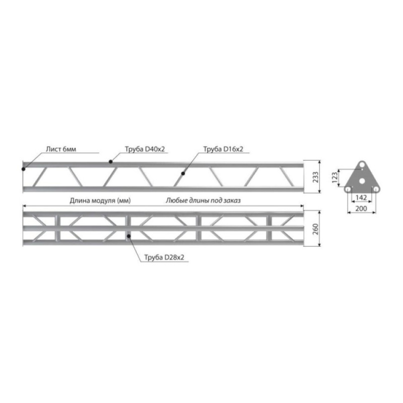 - Модель:Прямой модуль треугольной конфигурации длиной 4 м