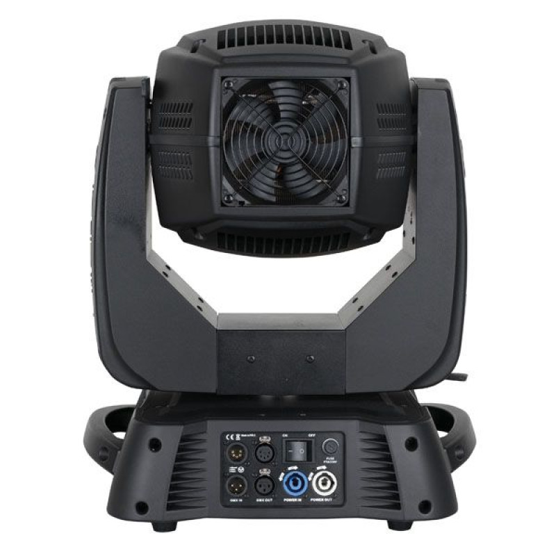 - Также предусмотрены функция диммирования, строб-эффект, 3-х гранная вращающаяся призма, дихроичные фильтры, фрост-фильтр, встроенные программы, моторизованный фокус, моторизованный ирис.