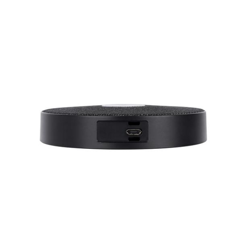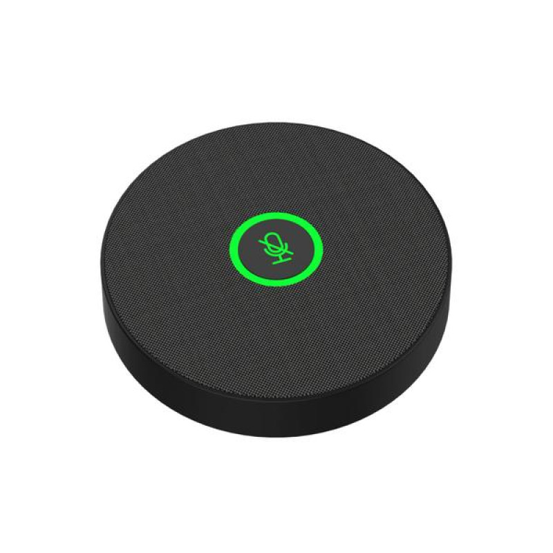 В верхней части микрофона имеется сенсорная кнопка отключения звука с информативной подсветкой. В нижней части спикерфона установлены плоские резиновые ножки, обеспечивающие устойчивость устройства на поверхности. Микрофон обеспечивает всенаправленный захват звука на 360 градусов и может захватывать звук на расстоянии до 6 метров от источника. Качественный звукосниматель обеспечивает высокое качество звука, четкую и разборчивую передачу речи при звонках и имеет дополнительную защиту от помех. Микрофон работает в частотном диапазоне от 50 Гц до 16 кГц и может обеспечивать одновременный захват речи 5-8 участников конференции. Для подключения микрофона в комплект поставки входит USB-кабель длиной 5 метров.