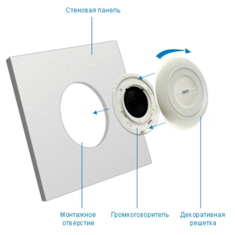 Громкоговоритель оснащен широкополосной 3-дюймовой динамической головкой с облегченным диффузором (на эластичном подвесе), а также высококачественным согласующим трансформатором для функционирования в трансляционных линиях 70/100В.