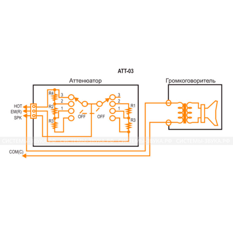 Аттенюатор предназначен для регулирования уровня сигнала на линиях напряжением 70 и 100 В непосредственно в зоне оповещения. Трансформаторный метод регулировки. Возможность подключения 2-х и 3-х проводной линии трансляции.