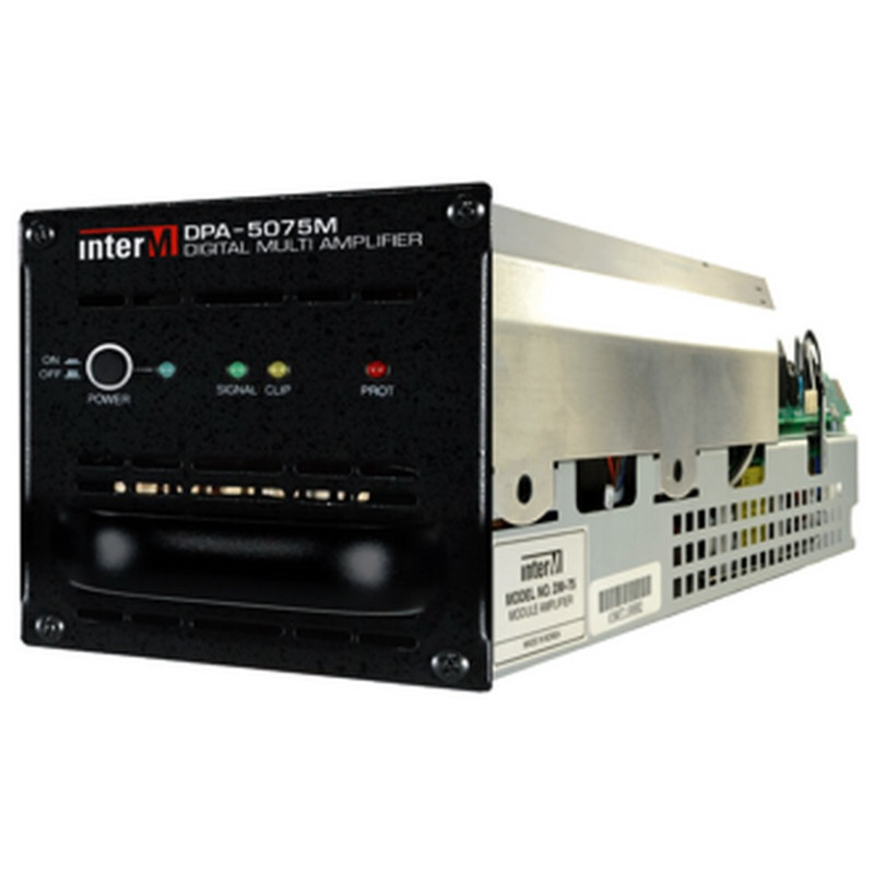 Inter-M DM-75 – Сменный модуль для усилителя DPA-5075M, с помощью которого осуществляется ремонт и реализуется возможность расширения мощности базового усилителя и/или количества каналов.