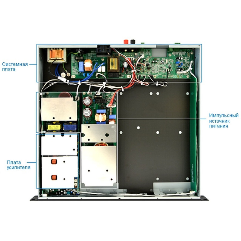 - Предусмотрен отдельный импульсный источник питания для каждого канала усилителя.