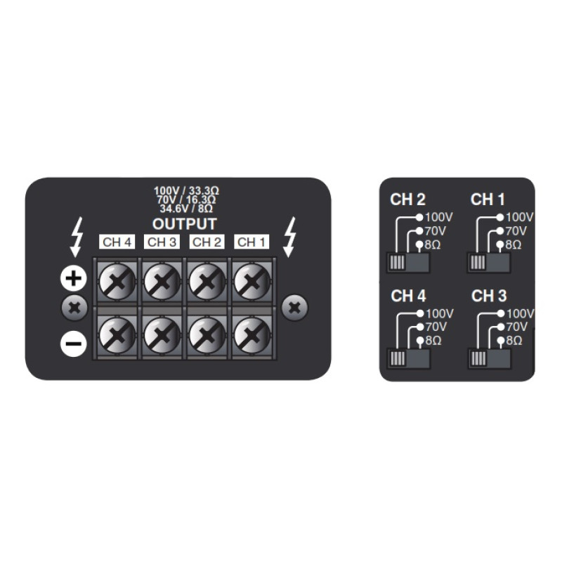 | Выходное напряжение/сопротивление | 100 В/66,7 Ом; 70 В/32,7 Ом; 49 В/8 Ом |