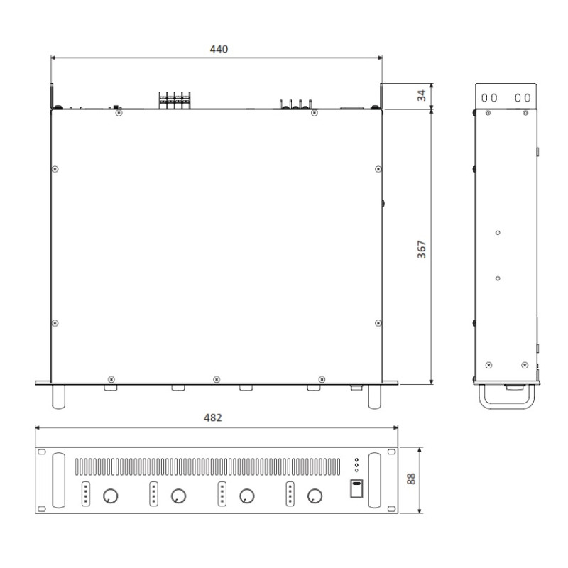 - 4 независимых канала мощностью по 150 Вт, предоставляющие возможность организации четырехзонных систем с возможностью трансляции как общих, так и различных сигналов.