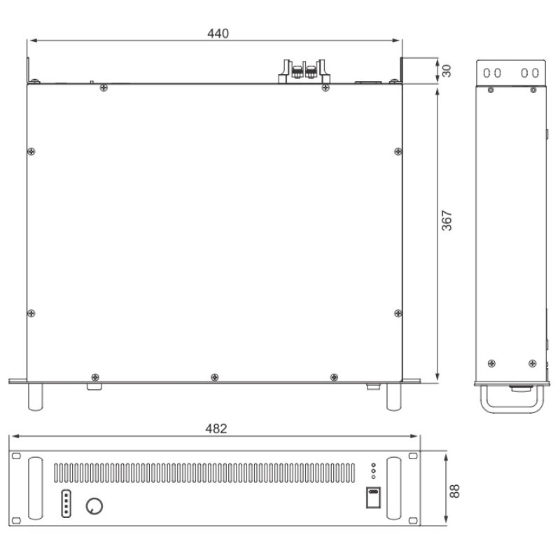 Питание усилителя 220В АС и 24В DC. Усилитель устанавливается в стандартный аппаратный шкаф или стойку 19".