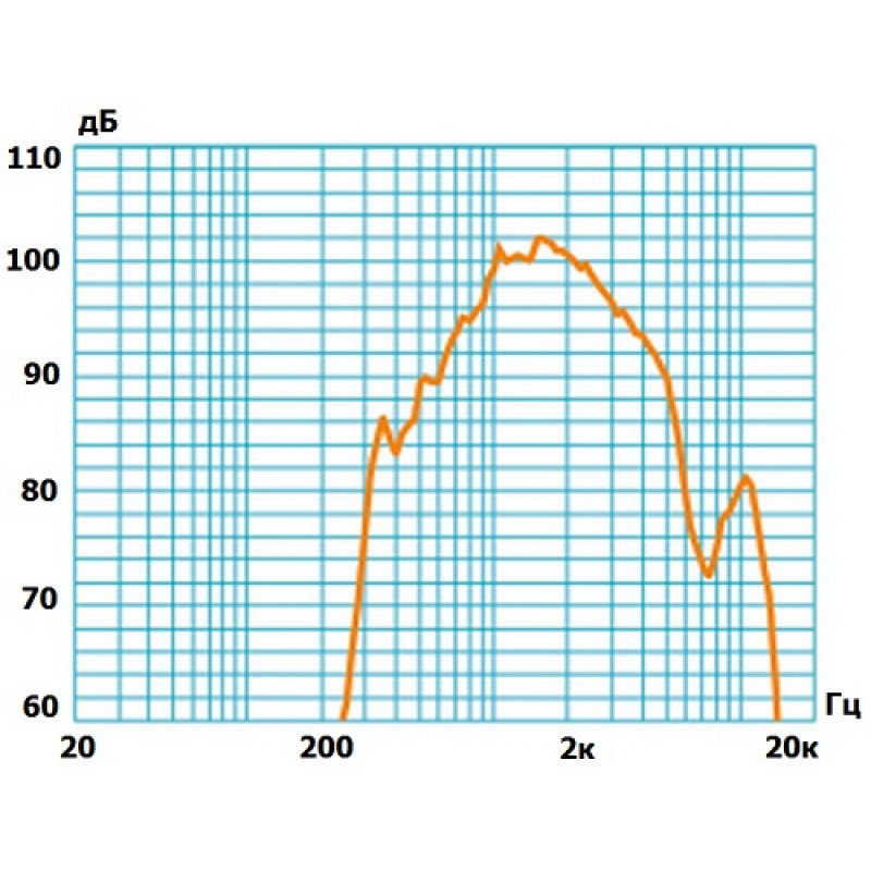 | Диапазон частот (–10 дБ), Гц | 290 ... 8300 |