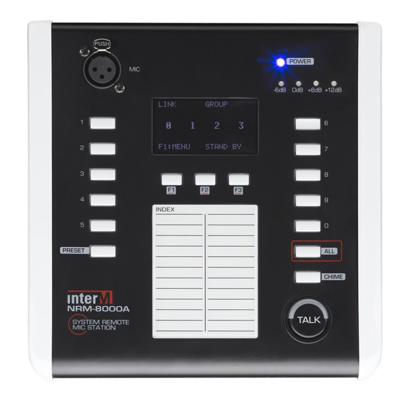 Inter-M NRM-8000A - Это моноблочная микрофонная консоль со встроенным селектором зон; применяется совместно с матричным аудиоконтроллером NPX-8000 новейшей сетевой системы оповещения, разработанной компанией Inter-M.