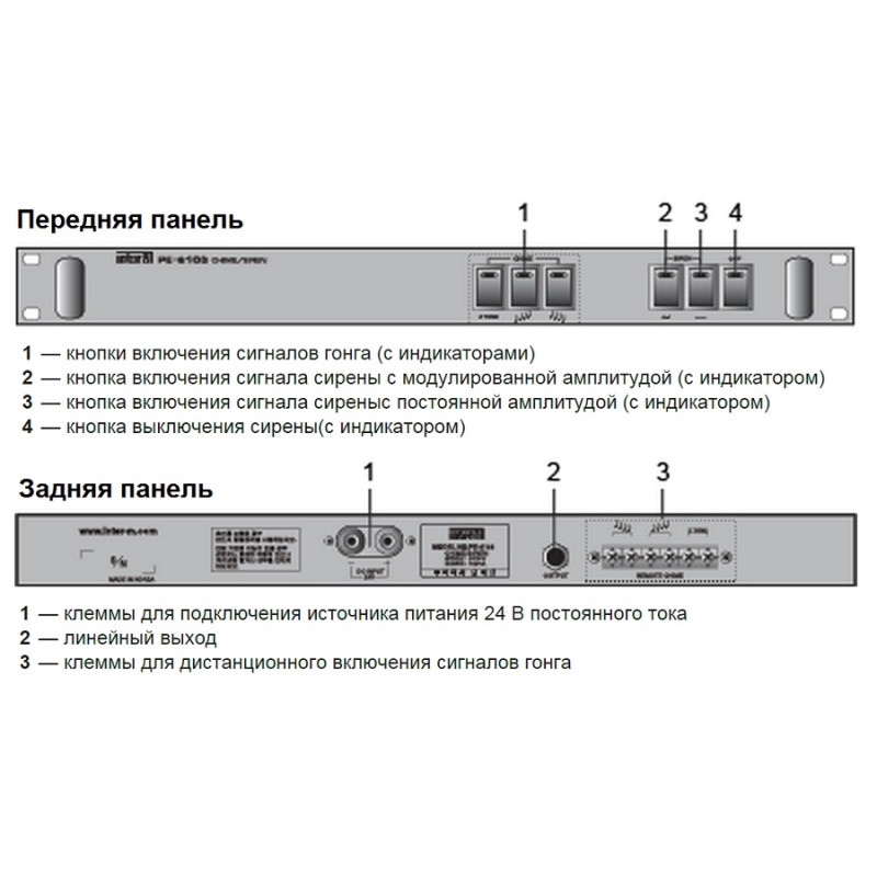 Блок Inter-M PE-6103 обеспечивает ручное включение сигнала сирены или сигнала гонга.