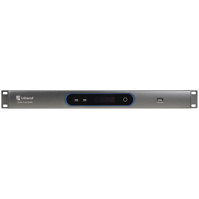 INTREND ITDSP-FLEX1208D — это универсальный цифровой сигнальный процессор с фиксированными 12 аналоговыми входами и 8 аналоговыми выходами, каналами Dante 32x32 и встроенным аудио по USB 2x2, который может обрабатывать как аналоговые, так и цифровые сигналы.